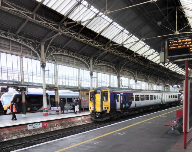 Another cold rainy day. Here are photos of Blackpool North one of which was taken from Sainsburys Cafe opposite station.