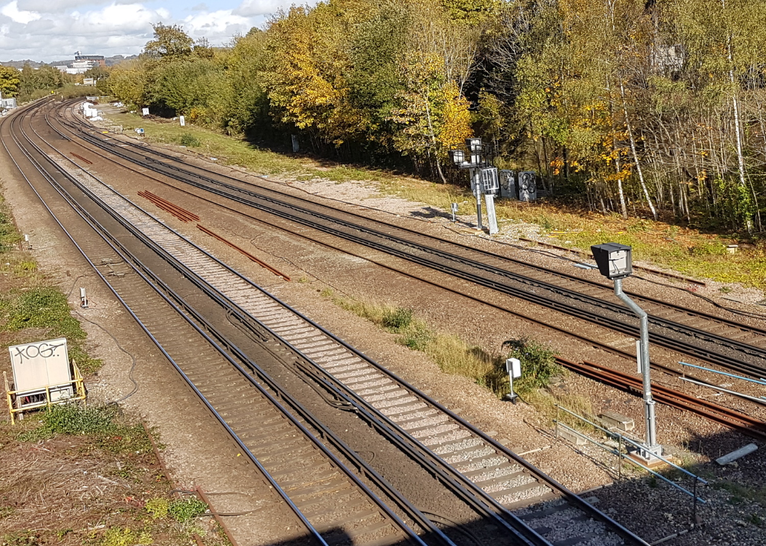 Meanwhile, in up-to-date Redhill, a friend complained a couple of weeks ago about the noise from the railway overnight. Walking across the bridge over the main Brighton line, next to Earlswood Station, I saw these two new signals, that were probably the cause of the noise. Just goes to show that shiny new signals do appear sometimes….