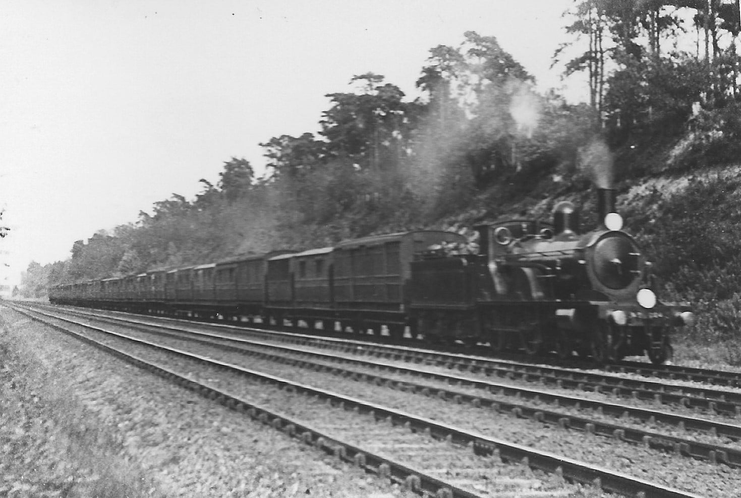 Two pictures of the incredibly elegant LSWR Adams X3 4-4-0’s. Mostly scrapped by Southern Railway days, but a single survivor, a T3 class, is preserved. The second photograph is from before WW1, and is an empty milk train.