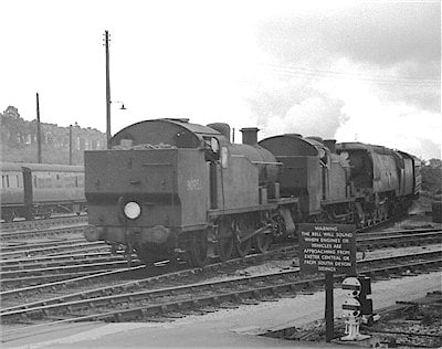 Beauty and the beasts? Exeter St David’s, and two Z class 0-8-0T bankers return to their starting place by piloting a Bullied Pacific heading a passenger service.