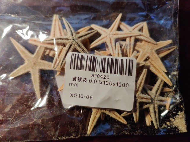 Hi Jon, Forgot to send you this for the blog perhaps? I ordered brass foil from China on Ebay – got dried starfish!