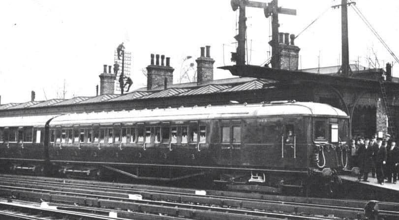And just to finish off, here’s a gem of a picture of the first electric train to reach Redhill – in 1932. Note the safe working practices on the telegraph pole in the background.