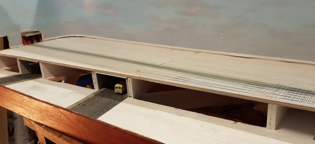 Last step was to fix the upper baseboard on top. I now have no excuse for starting the trackwork! I’ve worked out where and how to fix the point motors in place, and am also considering where to put droppers onto the track. Using code 40 track is more tricky than Peco, as you can’t get away with the fishplates to carry current between track, and I’m aiming to pre-solder all the wires, to avoid melting the point bases. Not easy…..