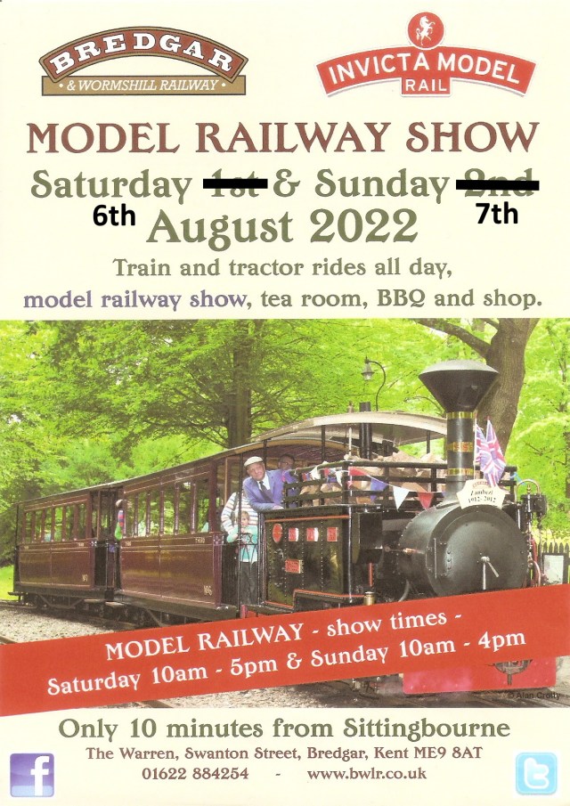 Should be fun! 2ft narrow gauge AND a model railway show! And a big whoops – dates were wrong on the flyer…….