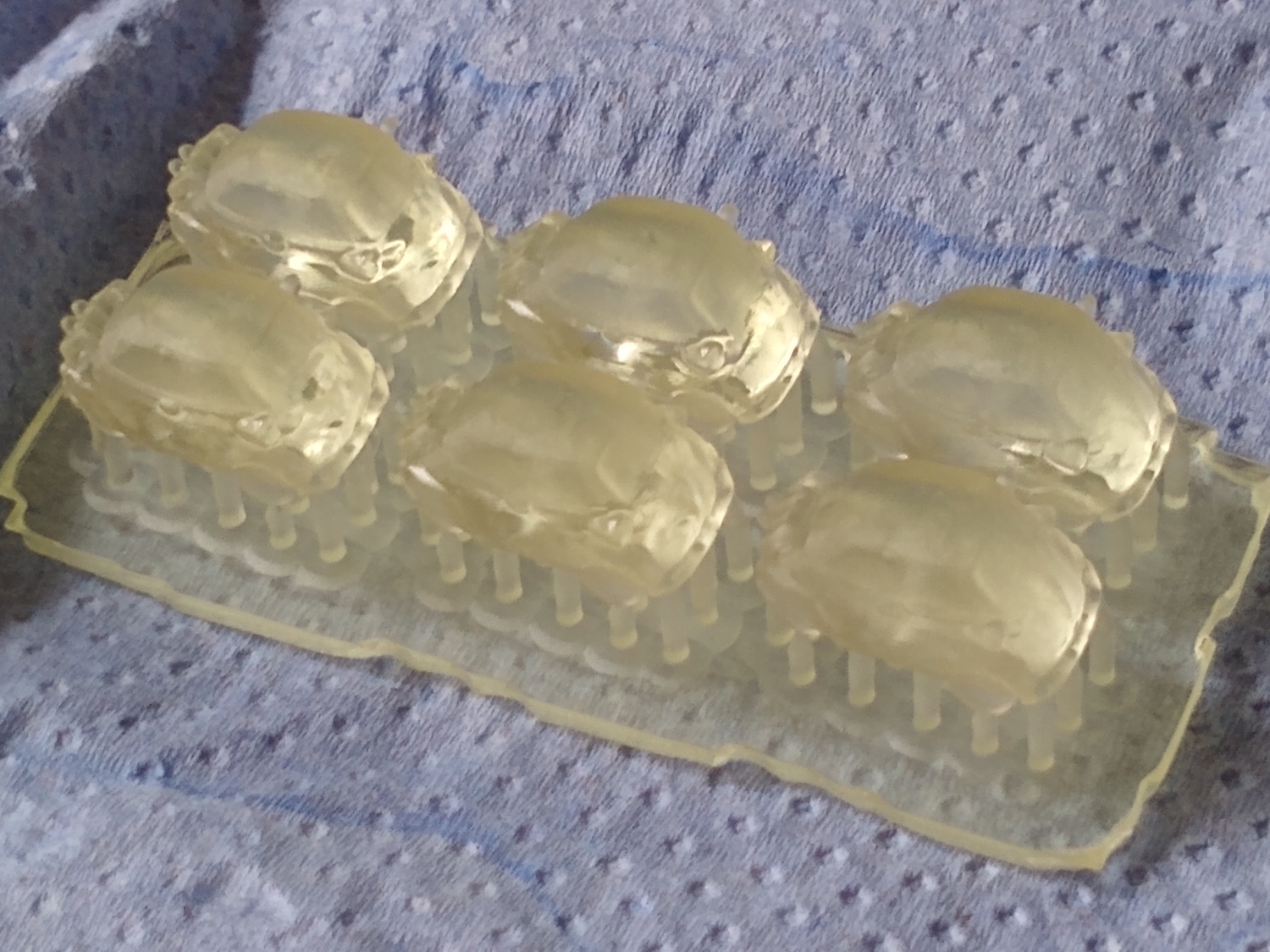 And a few days later Duncan found a 3D file of an Isetta bubble car, and offered to print me off a few to see how they came out. Here they are, nicely printed in clearish resin. The print was blown up a little in size, and has a few angled planes rather than curves, but you have to look closely to see this.