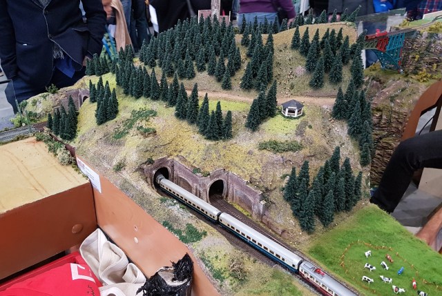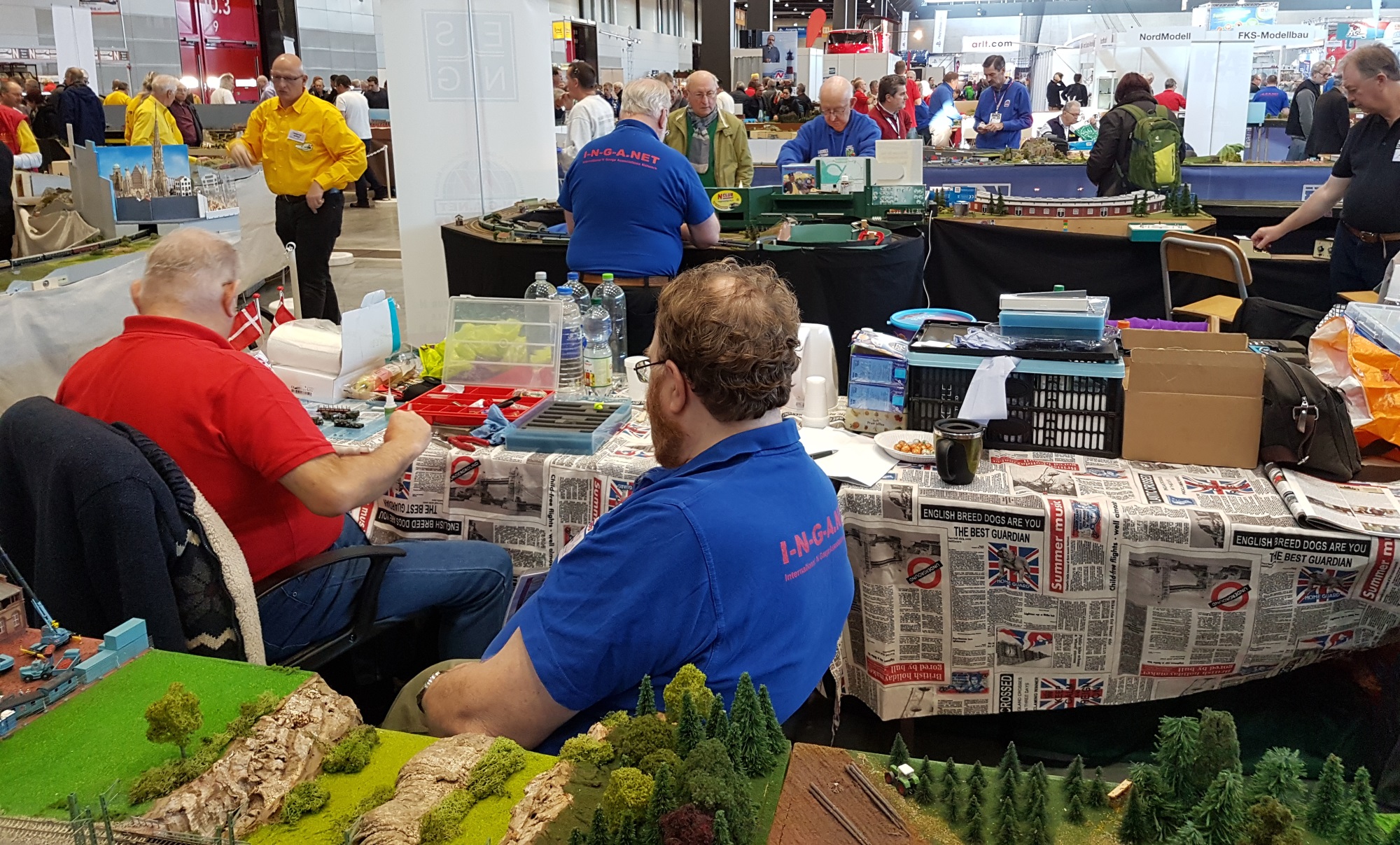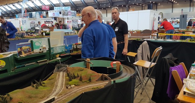Home from Stuttgart, and the lounge is again full of railways. They will go upstairs to the loft tomorrow, when I have a little more energy. We had another excellent week at the Stuttgart N-Club International meet. On the whole, the layout behaved very well, though there were a few electrical issues needing rewiring as we went along.