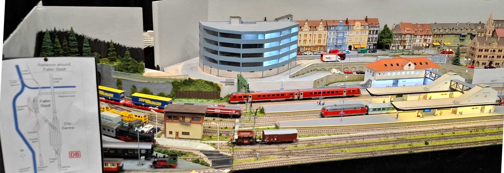 Faller Stadt (HO) was a fairly typical roundy-roundy, but there was considerable interest from viewers in the Faller bus system and the vehicles driving around in the background.