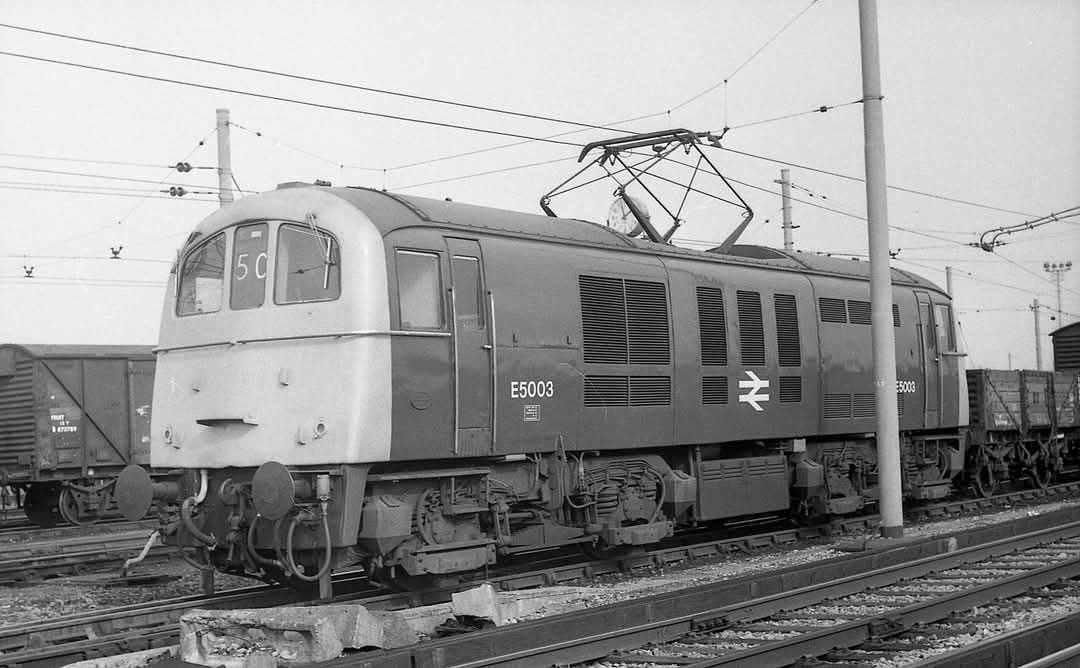 A later electric – an SR class 71 under the wires at Hither Green yard. I’m reliably informed that locos of this class didn’t have a large clock under the pantograph!