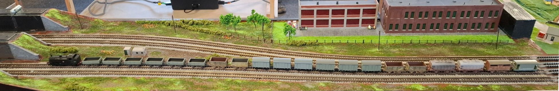 We started the meeting in the afternoon, to do some maintenance on the fiddle yard and curves. We set up the layout before supper – the usual something and chips. I tried out the battered black pudding, that turned out to be most acceptable.
