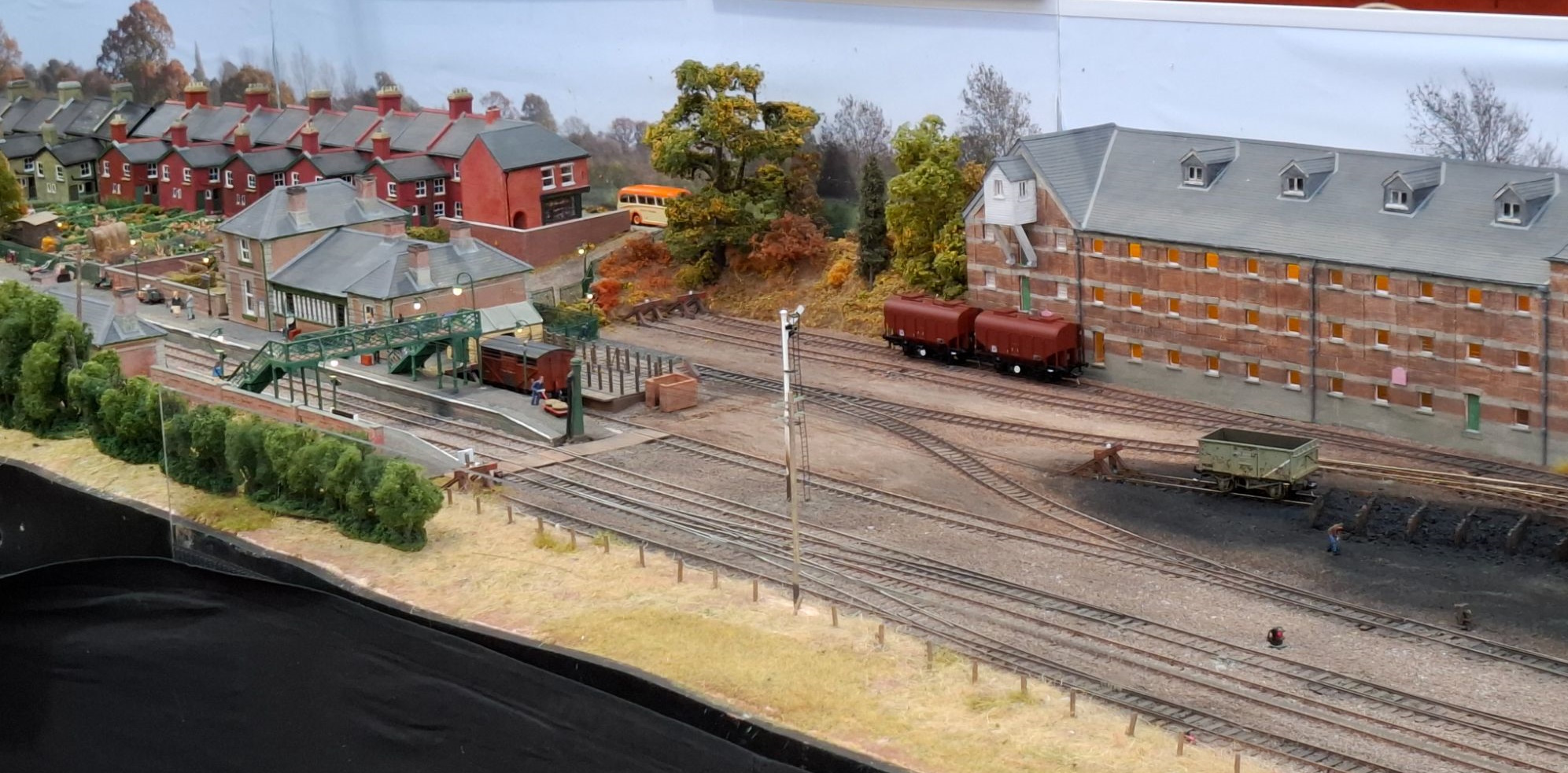 I think that I may get four posts from this show – there was such a good number of fine layouts to see. It’s interesting to see people’s reactions in the forums. Some thought it quite average – just shows how we all see things differently. There were the usual complaints about catering. Yes, it’s expensive, but I had a very acceptable bacon roll and coffee for breakfast, and a tasty cheese and bacon bap for lunch, together with a good pint of ale. Lunch was fun, as I met up with ESNG Cha(i)rman Allan as well as Malcolm for the pint. It’s always fun to introduce friends from different areas (and ages) of your life.