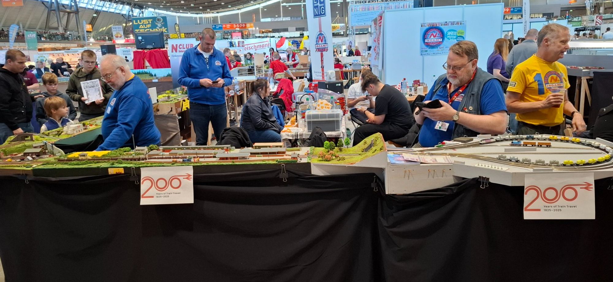 We thought that we should be able to set up quicker than last year (when we set up the morning the show opened.) so we had a late breakfast and went over to the hall after 10am. However, everything was set up except two gaps – an Nm module and the one next to us coming from Paris. So it was back to the usual Wednesday pose…..