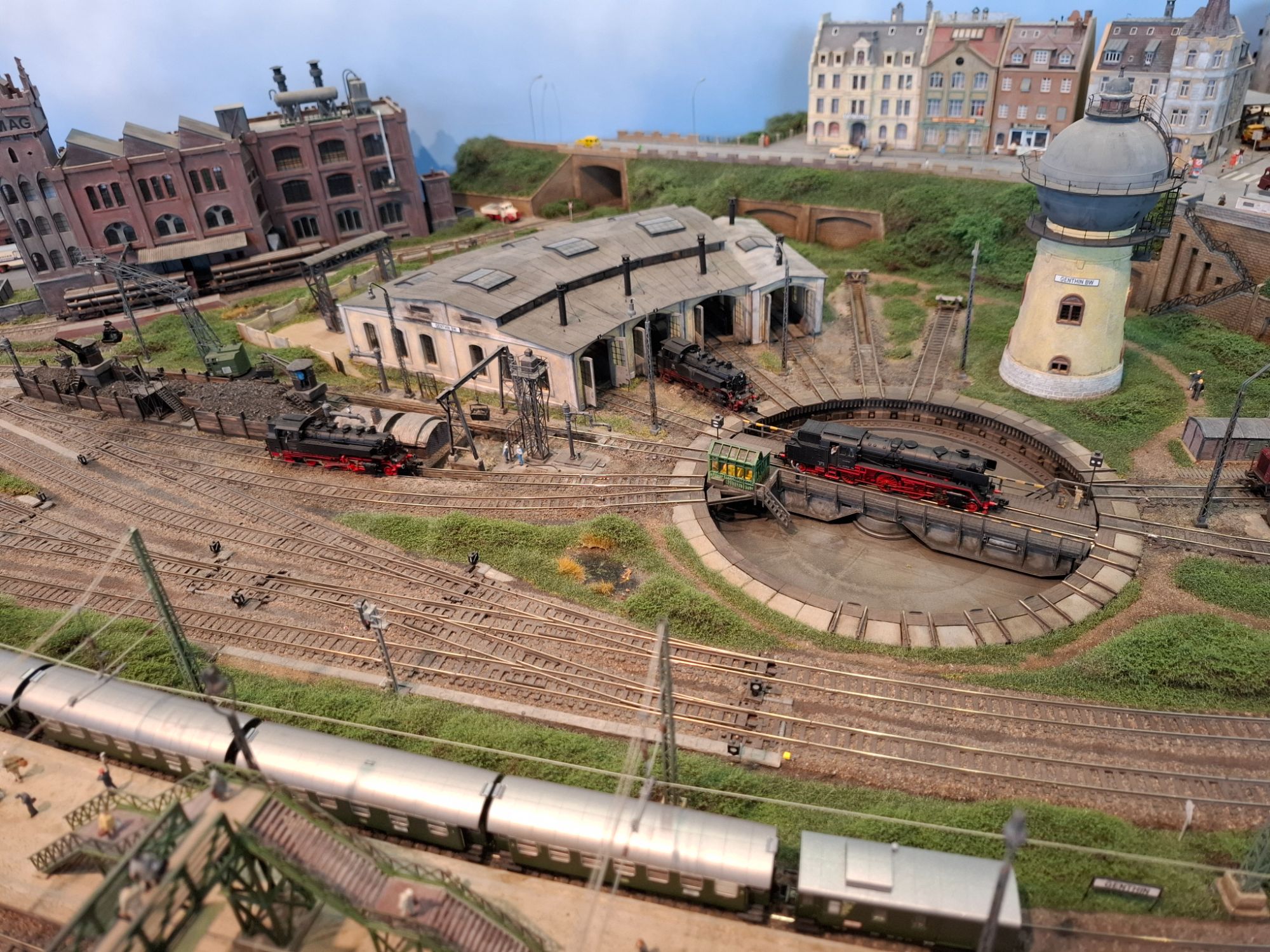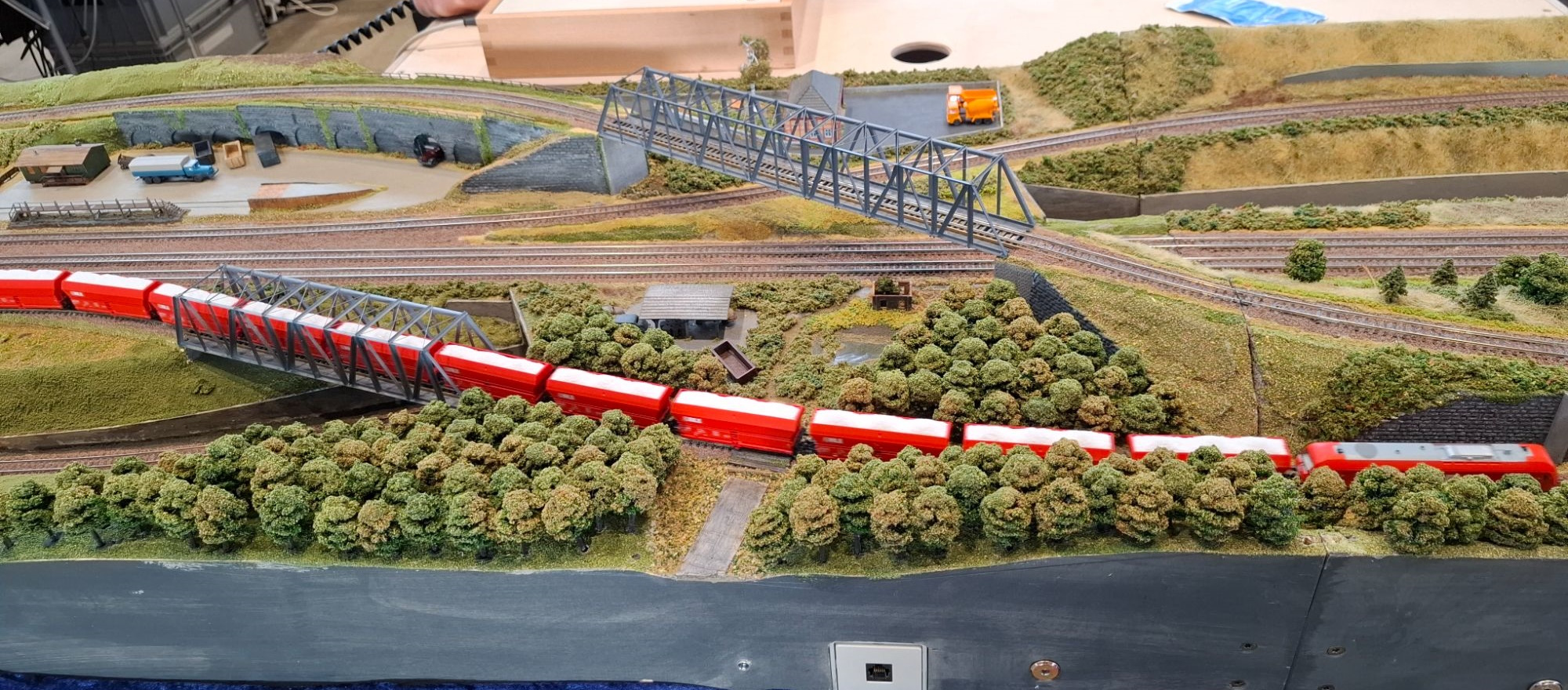Behind us, Pauline McKenna was running her new German layout. A simple double track plan just to watch trains go by. And without any station, full length ICE units don’t look out of place.