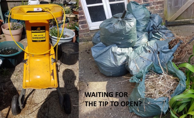 Another repost today. All’s well in the Bartlett household, but modelling has been replaced by gardening for a day or two. After Maxine’s epic pruning work, fortunately the shredder still worked. And the results were spectacular!