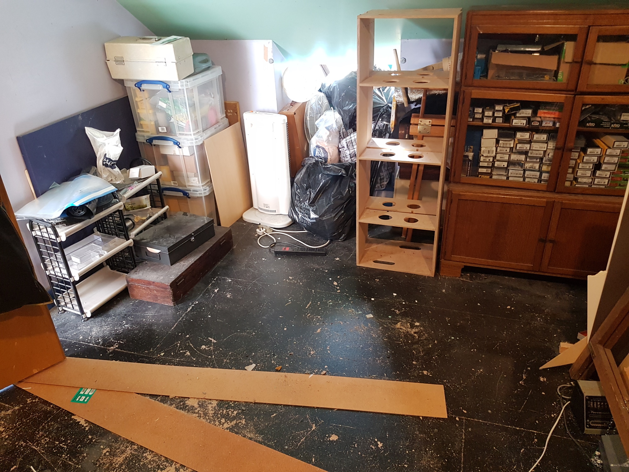So construction started by removing the existing end boards, and building new ones. The side pieces for the shadow-box were split into three, as my car wouldn’t easily take the 6ft of ply needed to do the sides in one piece. And this way took less wood. I’m painting the insides of the ends matt black. I’ve lost the end backscene, but hope that this finish will allow the eye to ignore the end of the world.