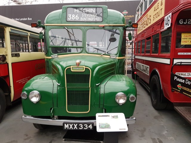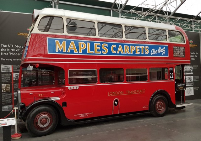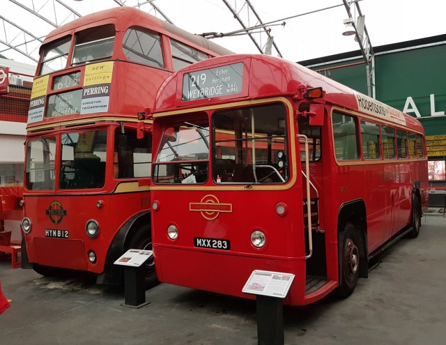 Another favourite, an ‘RLH’, an ‘RT’ with a lowered roof to get under low bridges. I started chatting to one of the attendants, who let us on the bus for a look around and upstairs. This was one thing I appreciated in all parts of the whole Brooklands museum. It was full of enthusiasts – ex bus-drivers, pilots and sometimes just enthusiasts, who wanted to go out of their way to explain their part of the museum.