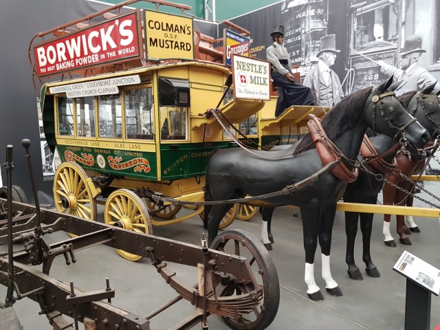 But horse buses were well before my time. These old buses are still operational, and occasionally go to events, with real horses on the front. One of the drivers in the museum said that they ride surprisingly well and comfortably.