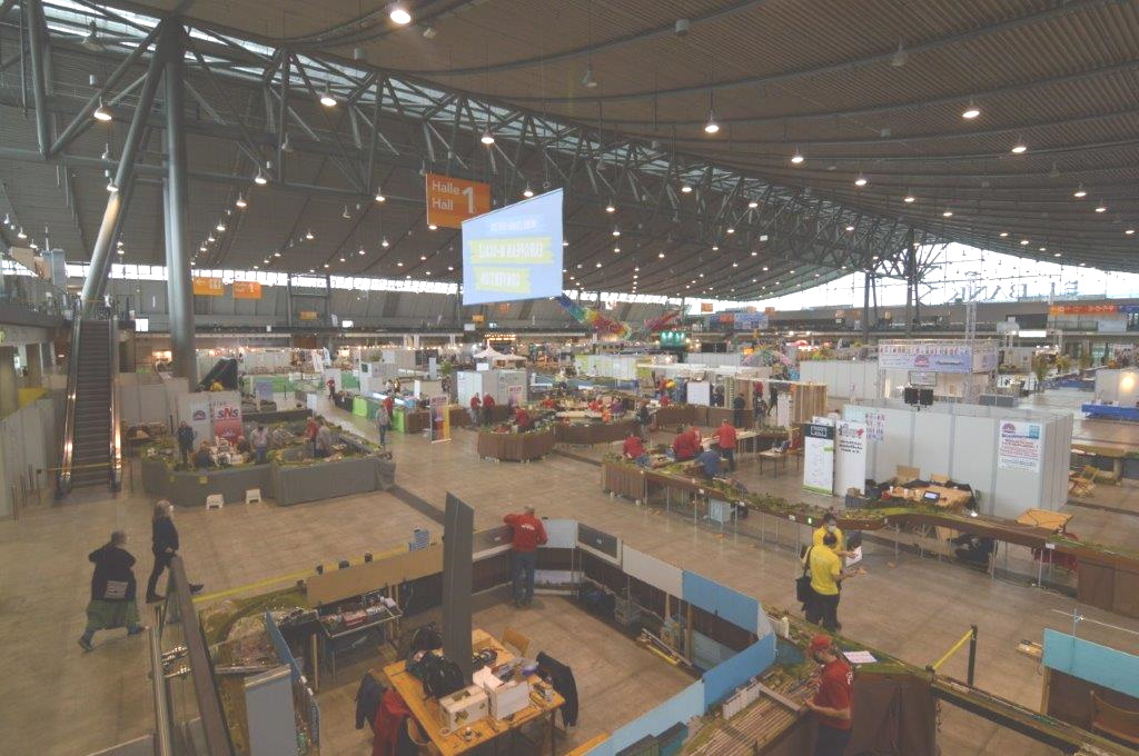 View over about half of the layout. We’re now in hall one, with the toy and game exhibition. All around the balcony was a huge Lego display.