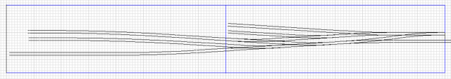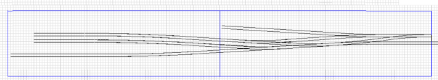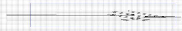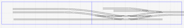 Although I intended to use Finetrax code-40 track for the layout, I started designing on the computer using Peco geometry, for simplicity. I then realised that using USA ‘Fast Tracks’ handbuilt templates gave me something very close to Finetrax – after all, a B8 turnout is the same except for the sleeper spacing. And things like Y-points were already included in my computer library.