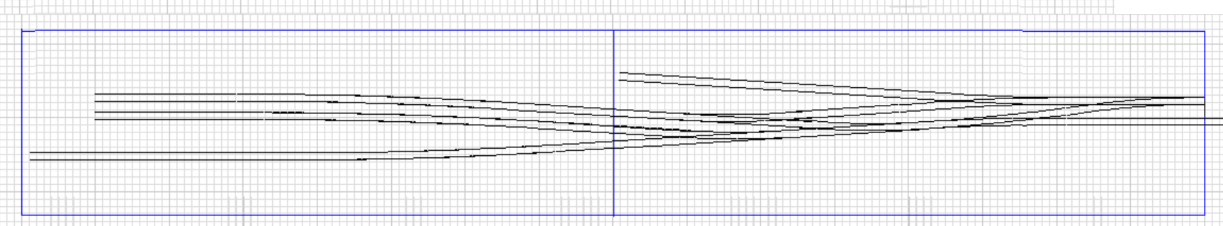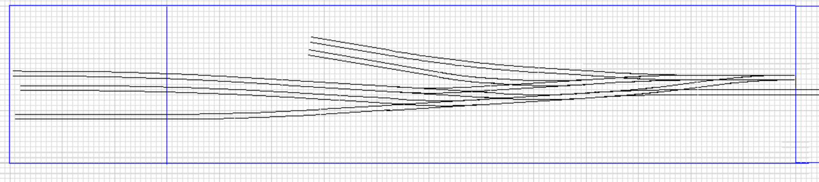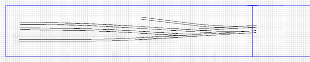 - First step will be to use Finetrax templates to lay the layout out full size. This will check all the clearances and determine the size of the high level baseboard. I want this board to be open underneath to give access for point motors and wiring.