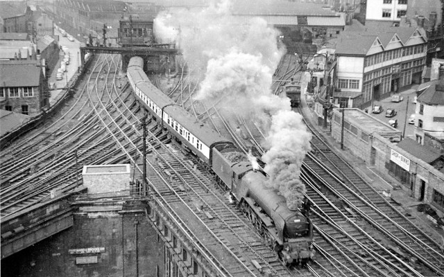 This was then cut down to make a shorter, Victoria Park version. Losing a crossover at the throat makes the station shorter. Either the two entry tracks are bi-directional, or one becomes a headshunt/loco road.